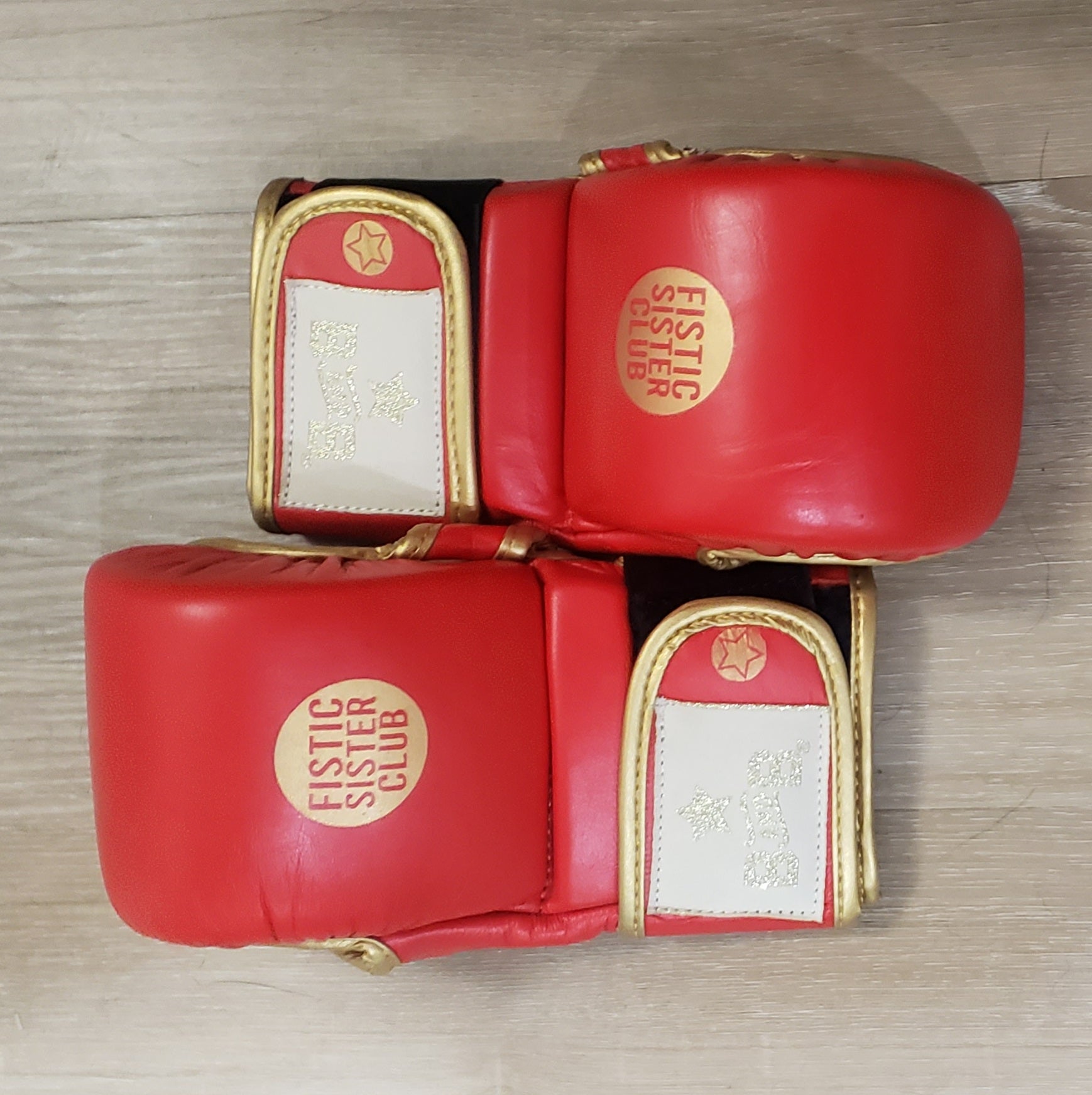 WE HAVE MADE MORE IMPROVEMENTS ON THE B&B® GLOVES! Knuckle padding that extends over all knuckles when making a fist and a double strap velcro clusure on wrist. Custom red leather boxing gloves that are open in the hand so that you can lift weights without taking your gloves off. We have made more design improvements on this glove and it now comes in butter soft leather with a full extension of the glove over the knuckles.